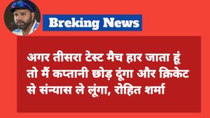 रोहित शर्मा का ऐलान _ अगर तीसरा टेस्ट मैच हार गई टीम इंडिया तो में टेस्ट क्रिकेट से संन्यास ले लूंगा , रोहित शर्मा ने हार ओर जीत की सबसे बड़ी वजह बताई। ओर कहा कि टेस्ट में दूसरा मैच हम हार गए और हमारी टीम की बहुत ट्रॉल किया जा रहा है।। तो कही ना कही में खुद दूसरे मैच की हार का सबसे बड़ा कारण है लेकिन तीसरे टेस्ट मैच में हम अपनी जान लगा देंगे मैच जीतने के लिए हमने अपनी टीम को जिस प्रकार भरोसे जताया है वो अलग लेबल का है