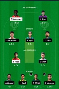 अगर पाकिस्तान पहले बेटिंग करती है तो टीम का स्कोर, 150 रन से ऊपर बनेगा तो आपको टॉस का इंतजार करना है और जैसे ही टॉस होता है और पाकिस्तान अगर पहले बेटिंग करती है तो बल्लेबाज को कप्तान और बॉलर को उपकप्तान बनाना है और अगर जिम्बाब्वे पहले बेटिंग करती है तो पाकिस्तान टीम के बॉलर को c_ vc बनाना है। अगर आपको 1st रैंक पर आना है तो एक अच्छी टीम बनानी पड़ेगी