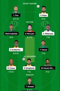- बल्लेबाज __ Mahamdulah, A Hossain, A athanaze, s Rutherford, t hashan,